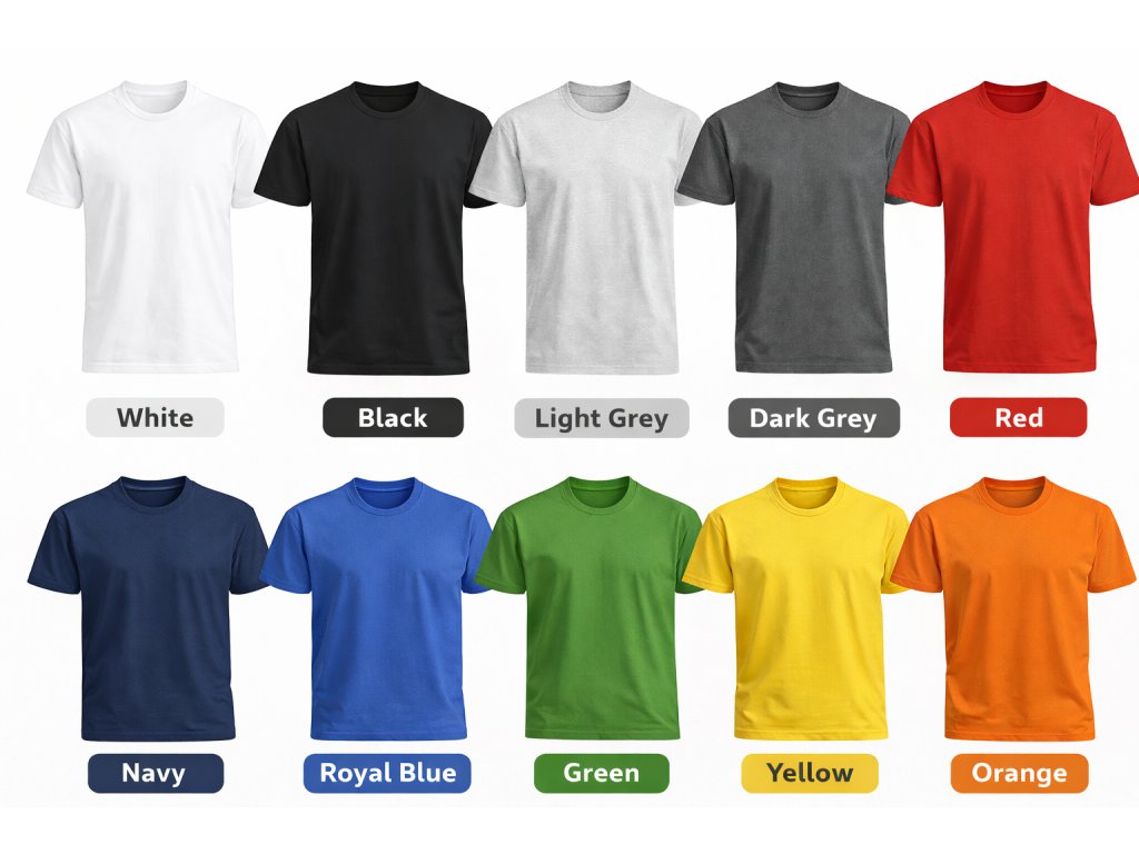 Kromě základních barev je možné tričko objednat také v dalších barevných variantách z kompletní barevné palety výrobce. Přehled všech dostupných odstínů je uveden na obrázku se vzorky barev.